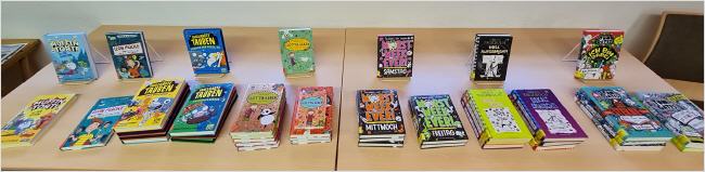 Sondertisch Comicromane: In der Zweigstelle Perouse liegen Comicromane für Kinder aus. Wie der Name schon sagt, sind diese Bücher eine Mischung aus Roman und Comic. Diese Art der Erzählung kommt bei Kindern gut an. Vor allem kleine Lesemuffel freuen sich über die auflockernden Zeichnungen.